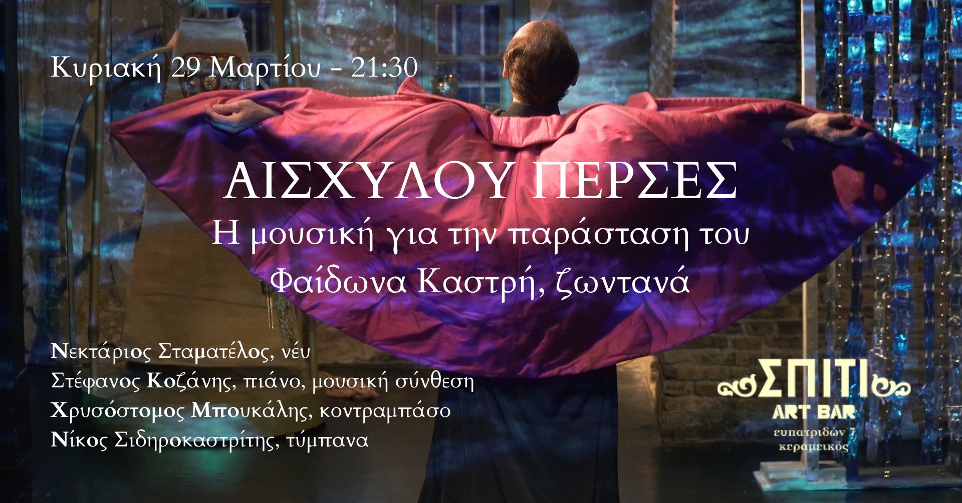 Αισχύλου «Πέρσες» στο ΣΠΙΤΙ Art Bar – Πρώτη ζωντανή παρουσίαση της μουσικής, Κυριακή 29 Μαρτίου