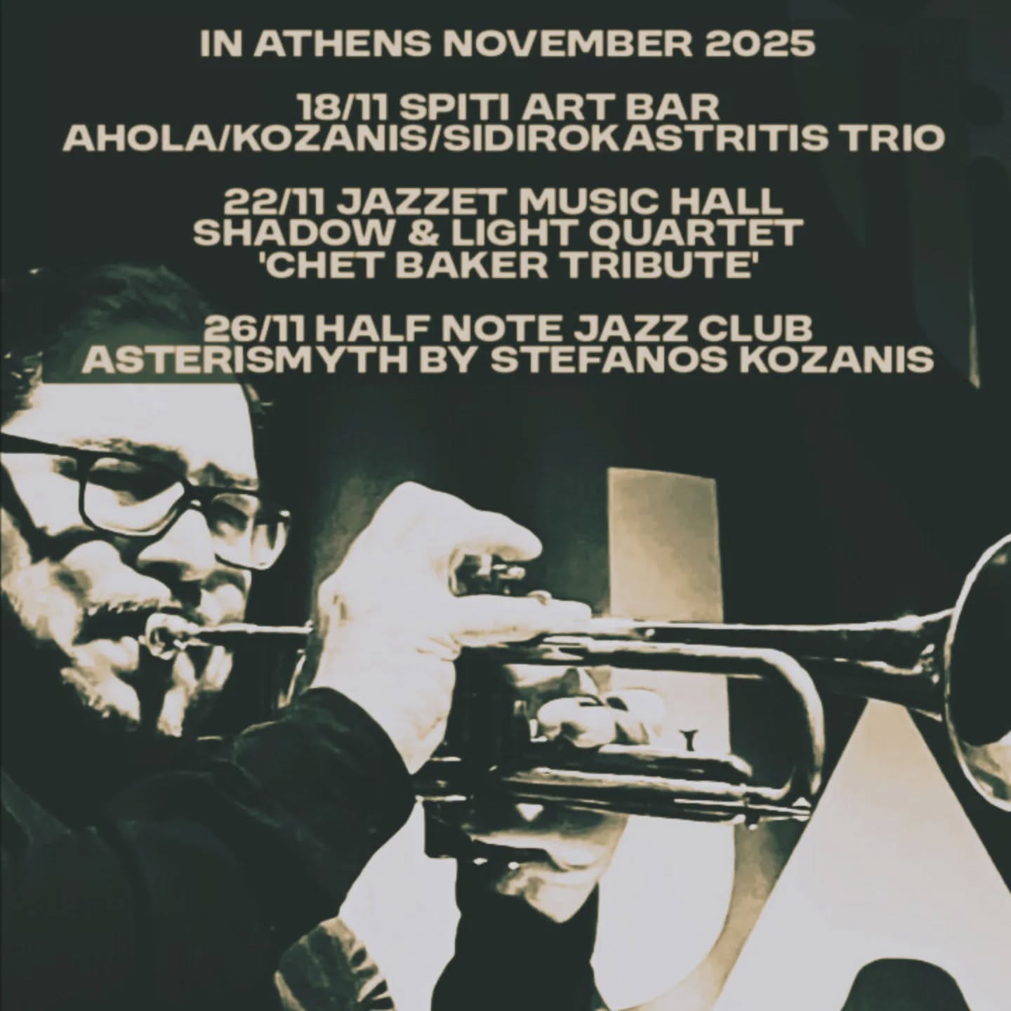 - Saturday, November 22, 2025, 22:00 – A tribute to Chet Baker, at Jazzét Music Hall with the "Shadow and Light quartet": Jykä Ahola (trumpet), Stefanos Kozanis (piano), Dimitris Bikos (double bass), and Evangelia Stavrou (drums) along with Panos Gerakakis